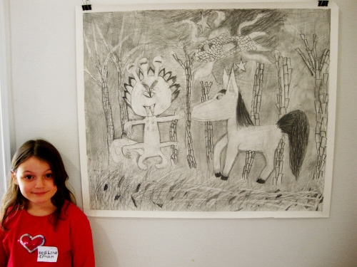 My daughter and I rode our bikes there this morning to play the piano on the front porch. What a great place! Great photo of your student and her drawing!!!