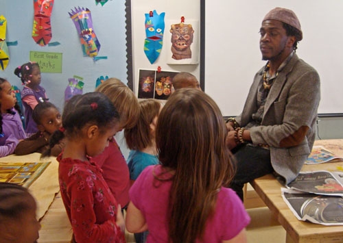 Thank you Melanie Hart the K – 3 Visual Art instructor at the School for Creative and Performing Arts for inviting me to talk with your first grade class this school year. Prior to my visit, the class was learning about Pablo Picasso and other cubist painters. Melanie’s students were working on a cubism-inspired cityscape. She asked if I would share with the kids my work and the inspiration behind it. The work looks great class!