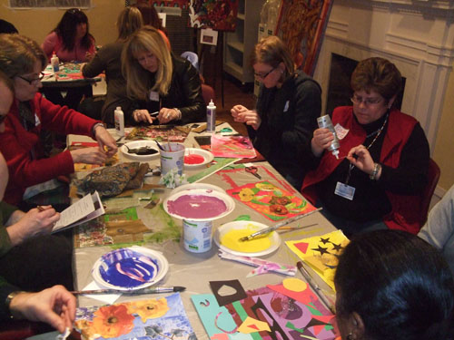 In addition to being one of the teaching artist in the Taft Museum of Art’s ARC (artist reaching classrooms) program where I tour local high schools around the city, I recently presented some of my favorite art educational experiences and lessons along with examples of my students artwork to teachers and assisting teaching staff for the Cincinnati Public Schools in service day. The program took place in the Charles H. Dater educational room in the Taft Museum of Art. Over 45 public school teachers from over 20 different schools participated and created some remarkable art work. Thank you Taft Museum and Cincinnati Public Schools for allowing me to be your guest and share my work and the work of my students.