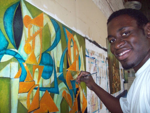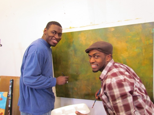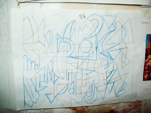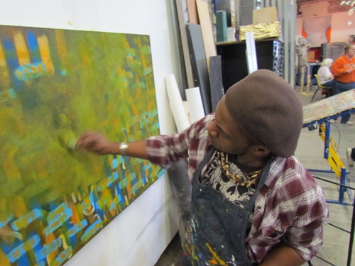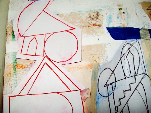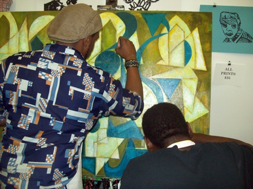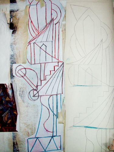 Working with Visionaries and Voices artist Diamond Snowden on Double Vision III was an absolute pleasure. As a Studio coordinator at V&V I have always injoyed watching Diamonds growth as and artist. This project was a chance for both Diamond and I to collaborate and understand each other’s process and how we both have grown since our last collaboration a year ago. Side by side in my studio and at V&V we planed and executed this painting together pushing, pulling and refining architectonic imagery that was inspired by Diamond’s work as well as mine. Check out how Diamond and I pulled the painting together from start to finish along with some of the images that sparked our creativity.