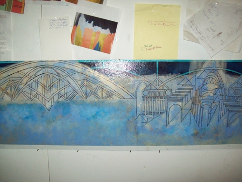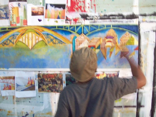 Join me for One New Painting Opening Friday August 31st at Frame Design. The exhibition will feature over twenty contemporary painters. In this showcase of talent I will debut “First City”. The architecture of the Cincinnati Museum Center and other monuments of our great city inspired this work. To RSVP on facebook for this exhibition follow this link. Click the link below to see the painting in progress.
