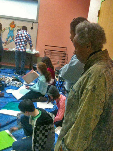 In conjunction with the Weston Art Gallery exhibition Straight from the Soul: the paintings and sculpture of Kevin Cole. Myself along with Pamela and Lennell Rhodes Myricks and artist/ educator Marcus Fletcher, conducted a series of Saturday classes from January 5th through the 26th at the Main Public Library of Hamilton County and Cincinnati called, Art Shapes Us. Pamela and Marcus worked with younger students doing collage work inspired by the sculptures of Kevin Cole while the students I taught ages 10 – 17 created paintings that where also inspired by Kevin Cole’s work and the work of our mentor Professor Tarrence Corbin. The end result was artwork that not only expressed the techniques of the artist who inspired the students, but the personal interest and vivid imagination that shaped every student’s character. Art Shapes Us, founded in 2006 is a program that brings together high school and middle school students from various educational intuitions and backgrounds for a 6 to 8 week art course. The 2010 Art Shapes Us program was sponsored the Cincinnati of Cincinnati Individual Artist Grant. This year Pamela and Lennell Rhodes Myricks sponsored the program along with former educator and patron of the arts Joel McCray and the Main Public Library of Hamilton County and Cincinnati. From February 16th to March 2 the work of these talented young artists will be on exhibit at the Children’s Learning Center at the Main Public Library of Hamilton County and Cincinnati. The opening reception is Saturday February 16th at 2pm – 4pm. Thank you Main Public Library for hosting this program and for all the educators and patrons who made the program possible, but most of all thank you to all the students who made this program a success. See the work in progress and the finished masterpieces below.