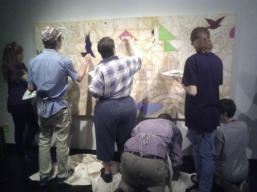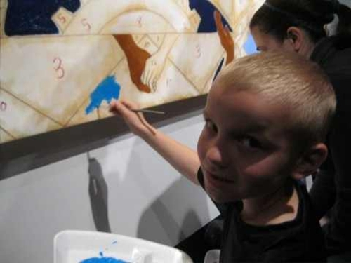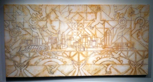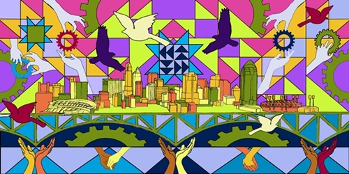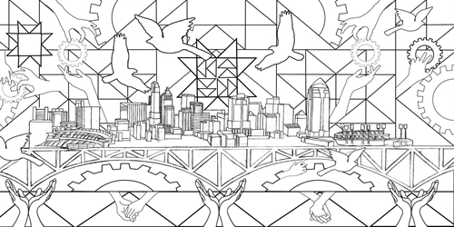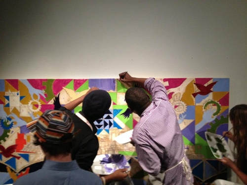 The Working in Progress paint by number mural is complete and on display at the National Underground Railroad Freedom Center. In conjunction with the Freedom Center’s exhibition Passages to Freedom, works by Stephen Marc, 4/27-8/31/2013, I along with my creative team of artists, created an interactive work of art in the form of a paint by number mural that museum goers painted on Saturday May 4th and 11th. I would like to personally thank the National Underground Railroad Freedom Center for all their support with this project. I would like to also thank my team of artists, Christian Harrson (Cincinnati State), Rita Beckman (McNicholas High School) , Previn Noble (Walnut Hills High School), and Visionaries and voices artists Barbara Riddle and Diamond Snowden who all worked with me through the various stages of the project. Most of all, I would like to thank friends, family and the general public for lending their creative touch to the painting. Stop by the Freedom Center from now till September 2nd to see the painting.