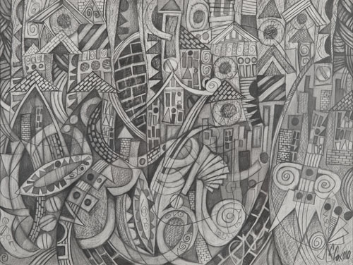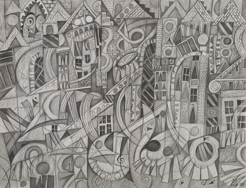 Polyphonic Monuments by Cedric Michael Cox, 20 x 34, graphite on paper